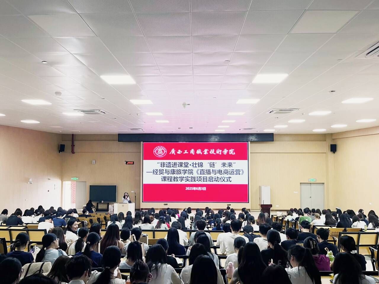 2025年6月3日,华体汇app官方网站经贸与康旅学院“非遗进课堂・壮锦‘链’未来”——《直播与电商运营》课程教学实践项目启动仪式在武鸣校区举行。校企双方代表、师生约六百人共同参与活动。启动仪式现场启动...